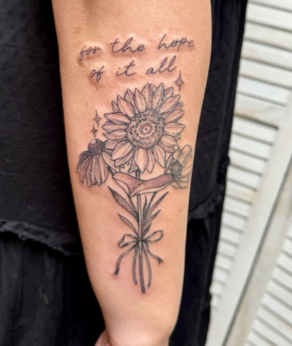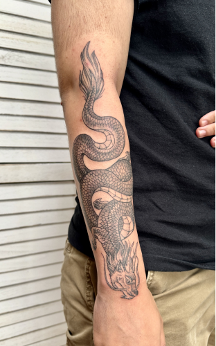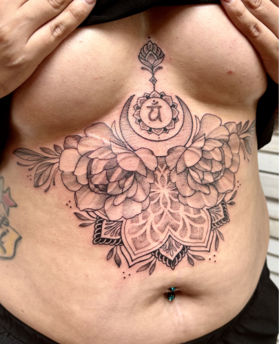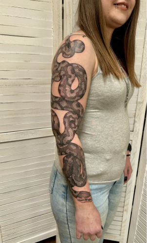 Stilistisch haben es ihr seit Beginn ”Bold Lines” (dicke Linien) angetan, zum Beispiel in ornamentalen Projekten, mittlerweile liebt sie filigrane Fineline-Tattoos aber mindestens genauso sehr. Dabei möchte sie sich aber gar nicht begrenzen, sondern macht sehr gerne auch mal realistische Motive oder Concept Art mit ihrem eigenen Twist.